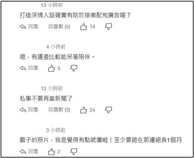 台湾省网友纷纷觉得具俊晔在演戏,毫不客气吐槽他打造深情人设是为了赚钱,还拿具俊晔和刘真丈夫辛龙做对比,直言同样是深情丈夫,辛龙在妻子去世之后就几乎没有公开报道了,和具俊晔形成鲜明对比。